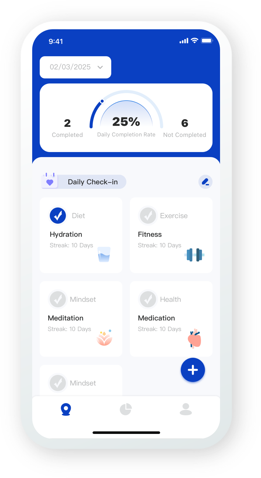Monitor your habit completion rate by viewing completed and incomplete tasks.